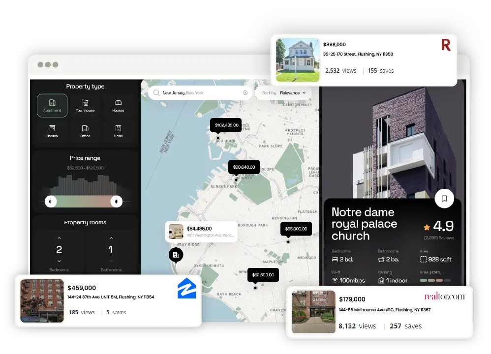 Track fresh property listings and offers from top UK real estate sites, giving you instant insights on pricing, deals, and trends.